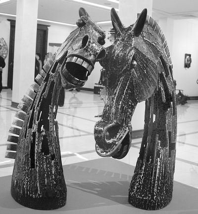 Кроме работы по металлу, Валентин Яковлевич наделен и литературным талантом. Характерен его литературный псевдоним – Металлиссимус. Но все же мозолистые руки выдают истинную страсть – оживлять металл. Юбилейная выставка металлиссимуса27 августа 2009 578 События С 23 августа по 10 сентября 2009 года в московском Новом Манеже будет проходит юбилейная персональная выставка скульптора Валентина Воробьева. Обязательно посетите! Зураб Церетели и Валентин Воробьев. Фото с сайта художника. Валентин Воробьев – один из крупнейших художников по металлу, скульптор-кузнец из Москвы. Свое направление он называет “техно-арт”, корни которого восходят к отдаленной сельской глубинке под Белгородом, куда приехала семья Воробьевых из Москвы. Свой путь художника он начинал с ковки и сварки металла. Работал в основном со сталью и медью. Чайный паровоз . 2006. Сталь, ковка, сварка, дерево. Размер: 140x70x60 см. Вес: 60 кг. В. Воробьев – успешный автор с творческим псевдонимом “Металлиссимус” — возглавляет Московский творческий союз художников кузнецов (МТСКх), основатель галереи “Праздник души”, выставлялся Лувре. В 2009 году удостоен золотой медали за развитие современного искусства Российской академии художеств. Леонардо . 2005. Сталь, ковка, сварка. Размер: 200x100x50 см. Вес: 20 кг. Музей современного искусства. Сайт художника: Адрес выставки: г. Москва, Георгиевский переулок, дом 3/3, стр. 3 Источники: http://www.uglmus.ru/news/show/23/, http://www.afishka31.ru/actions/vernisaz/num10294/, http://www.vzsar.ru/news//08/31/v-radischevskom-myzee-otkrylas-vystavka-kyzneca-vorobeva.html, http://www.belpravda.ru/news/24.3.12-1370.html, http://ostmetal.info/yubilejnaya-vystavka-metallissimusa/ | |